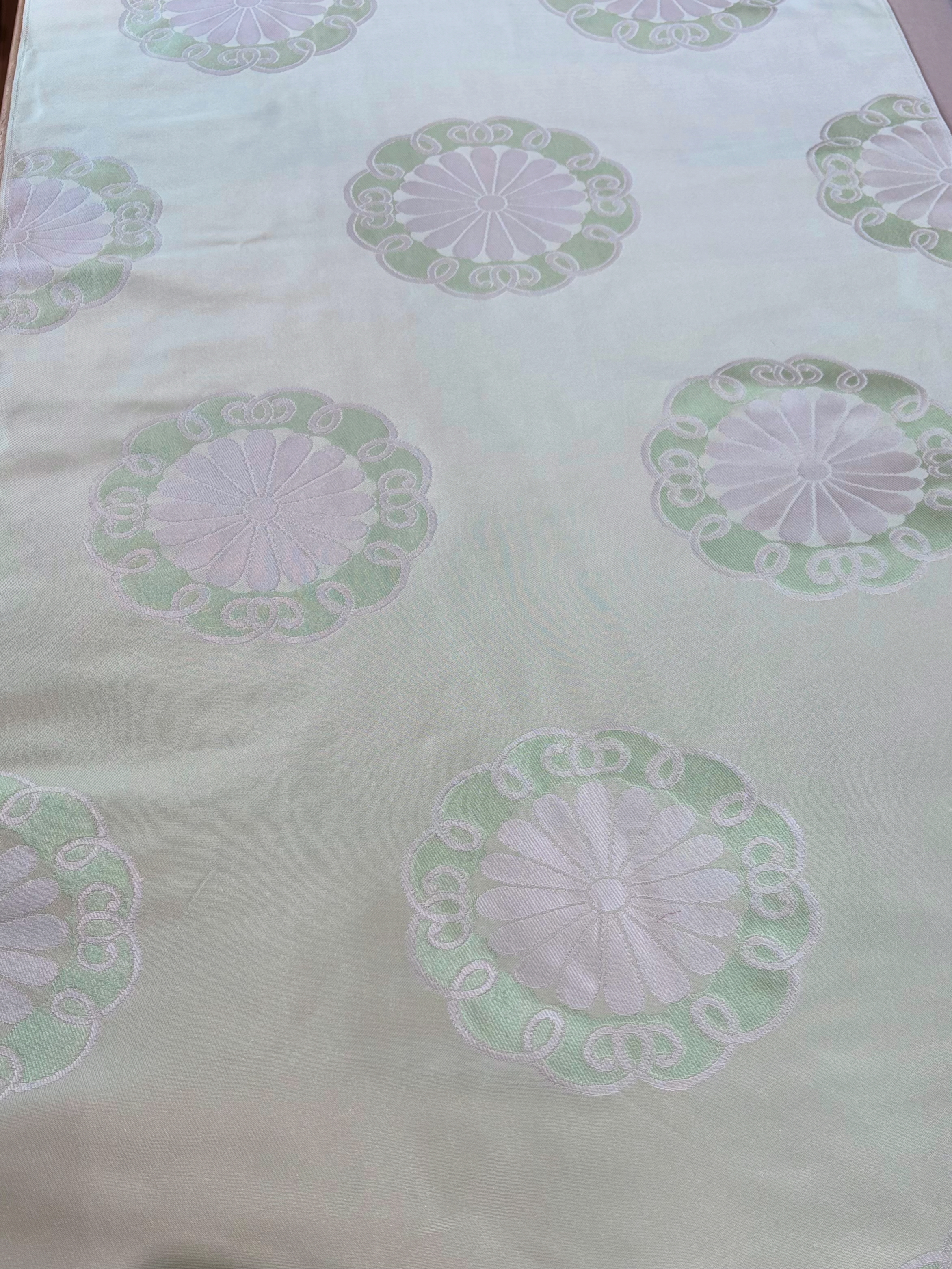 商品コードN067 人気の藤立涌に花鳥紋です。萌黄地が華やかでお勧めです。